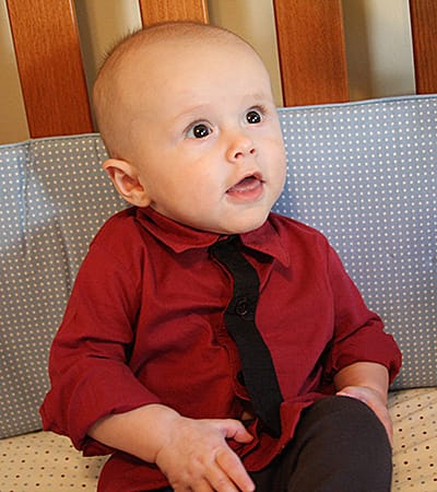 Today Sebastian is 20 weeks old. 20 weeks is also 1/2 of the time he was inside his mom’s belly, and 20 weeks is typically the point during the pregnancy in which you find out the gender of the baby. He’s grown a lot in 20 weeks. How many times can I say 20 weeks in this post? One more time (20 weeks). I took this photo of him this morning. He’s wearing a 100% Pima Cotton, Peruvian-made ensemble by Feather Baby. The outfit was purchased at Popo in Green Hills by his Aunt Pat last Easter.