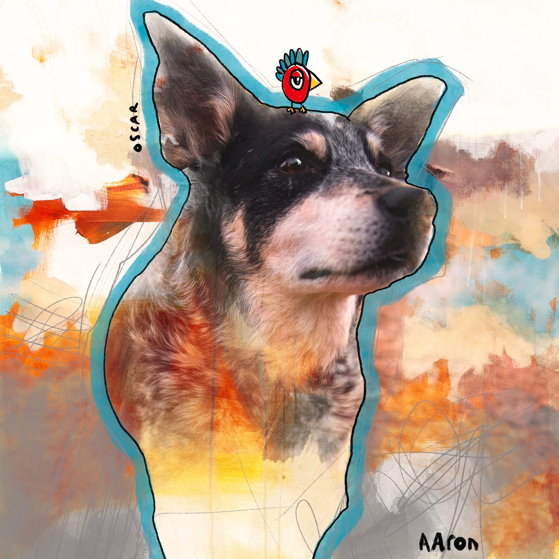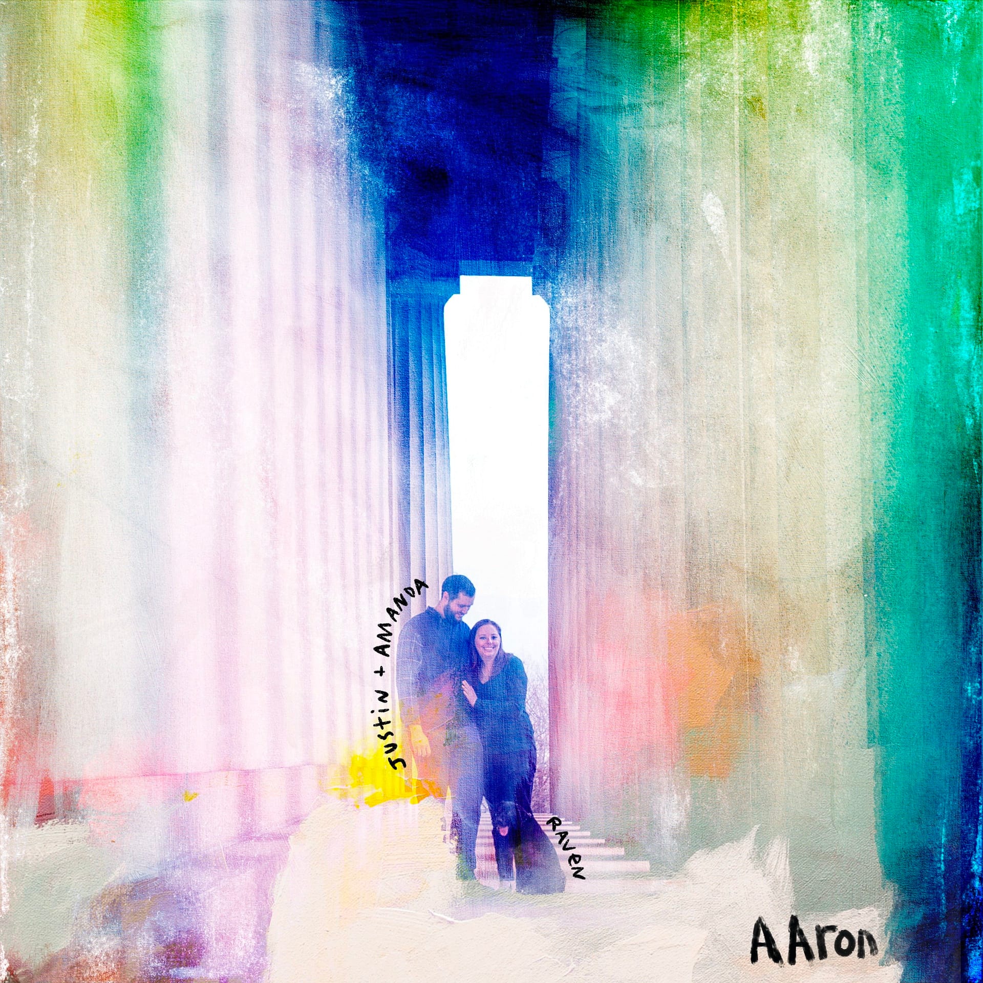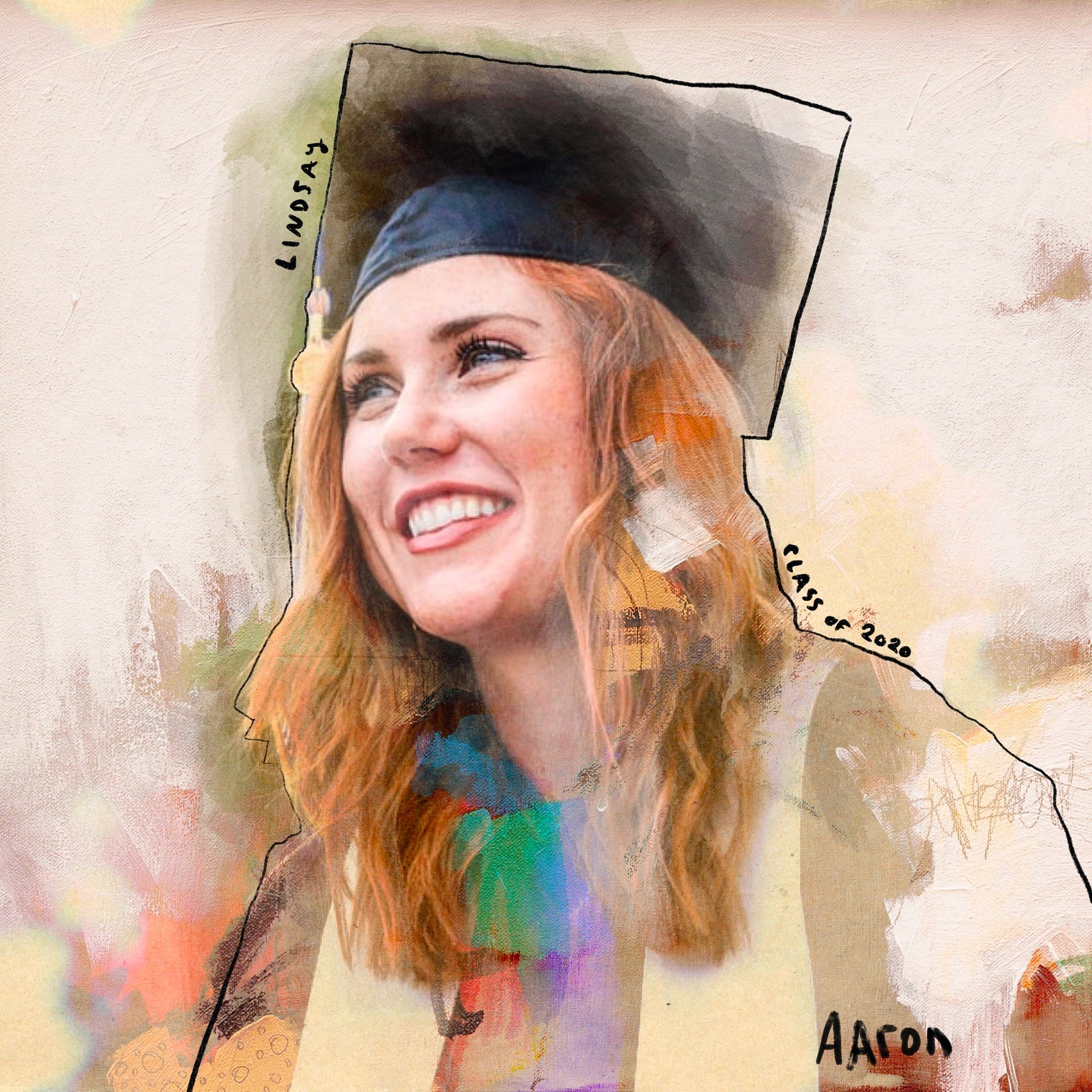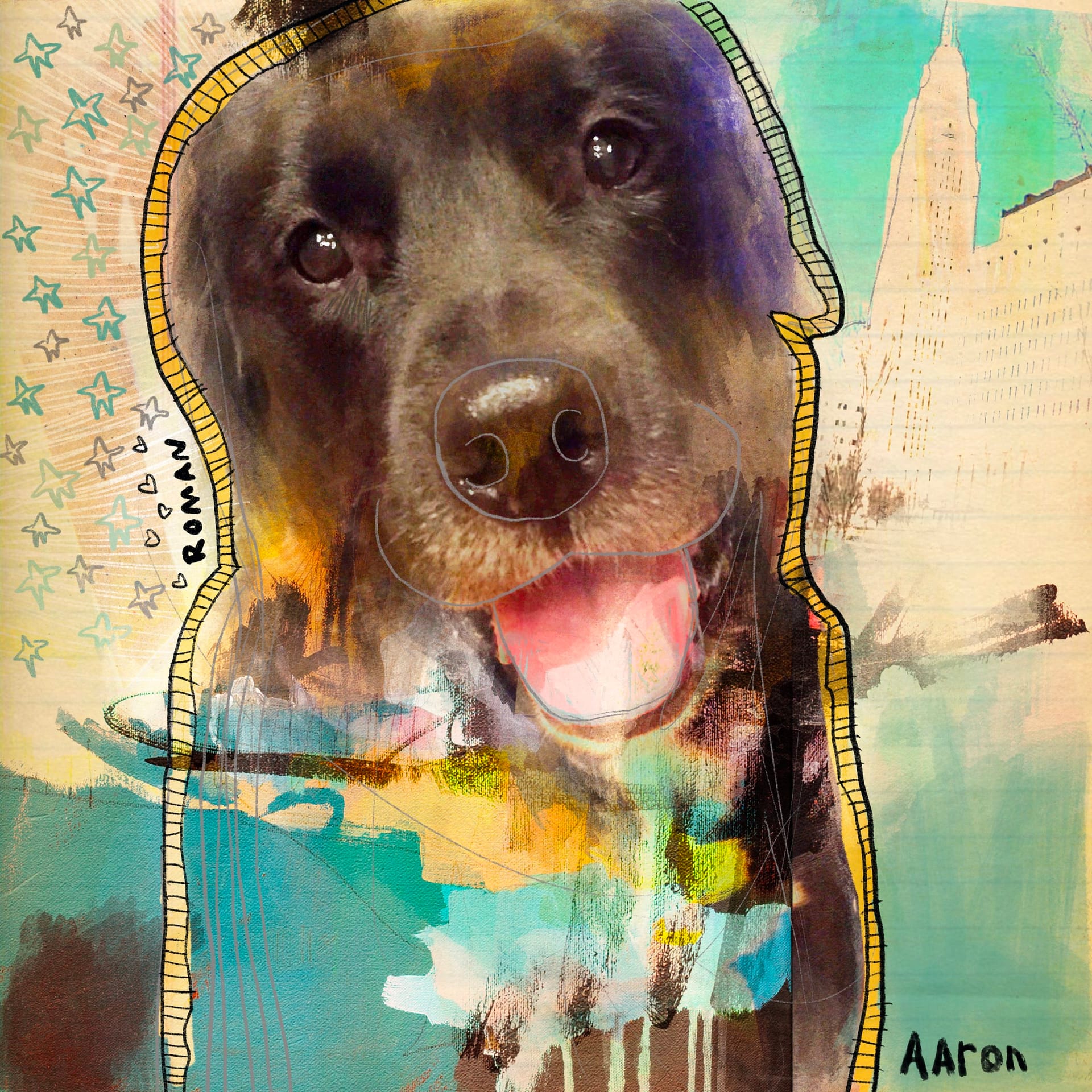 These illustrated portraits are a mix of photography (supplied by you) along with digital and non-digital techniques.